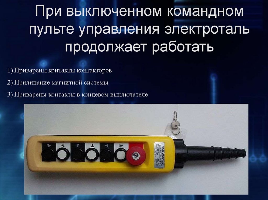 При выключенном командномпульте управления электроталь