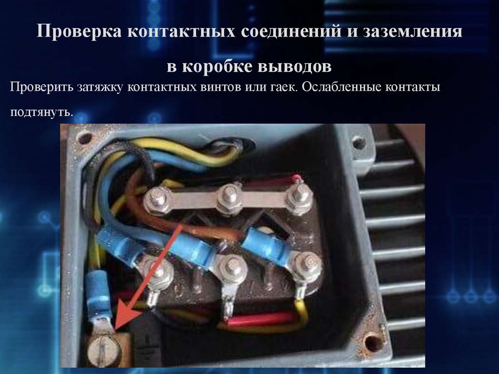 Проверка контактных соединений и заземленияв коробке выводов