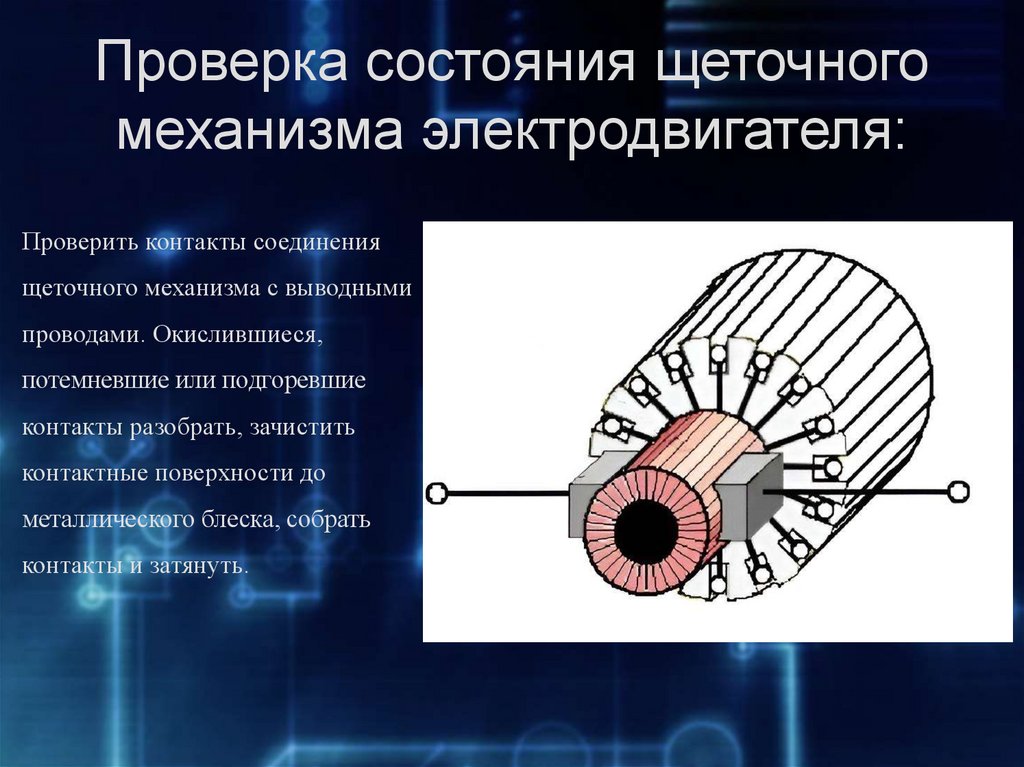Проверка состояния щеточногомеханизма электродвигателя: