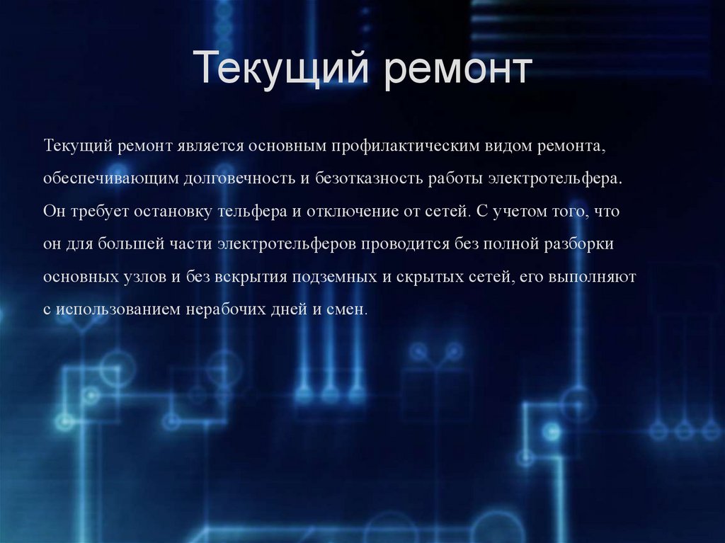 Текущий ремонтТекущий ремонт является основным профилактическим видом ремонта,