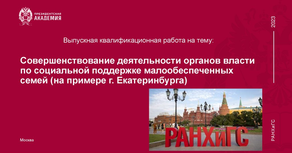 Совершенствование деятельности органов власти по социальной поддержке малообеспеченных семей (на примере г. Екатеринбурга)