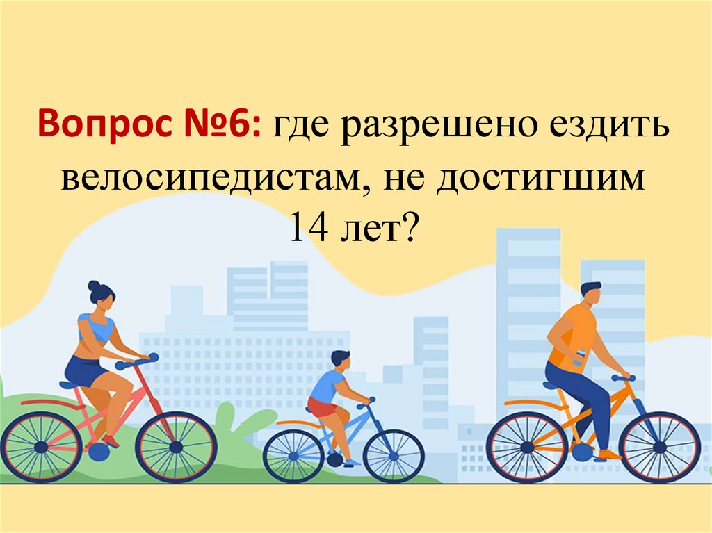 Вопрос №6: где разрешено ездитьвелосипедистам, не достигшим