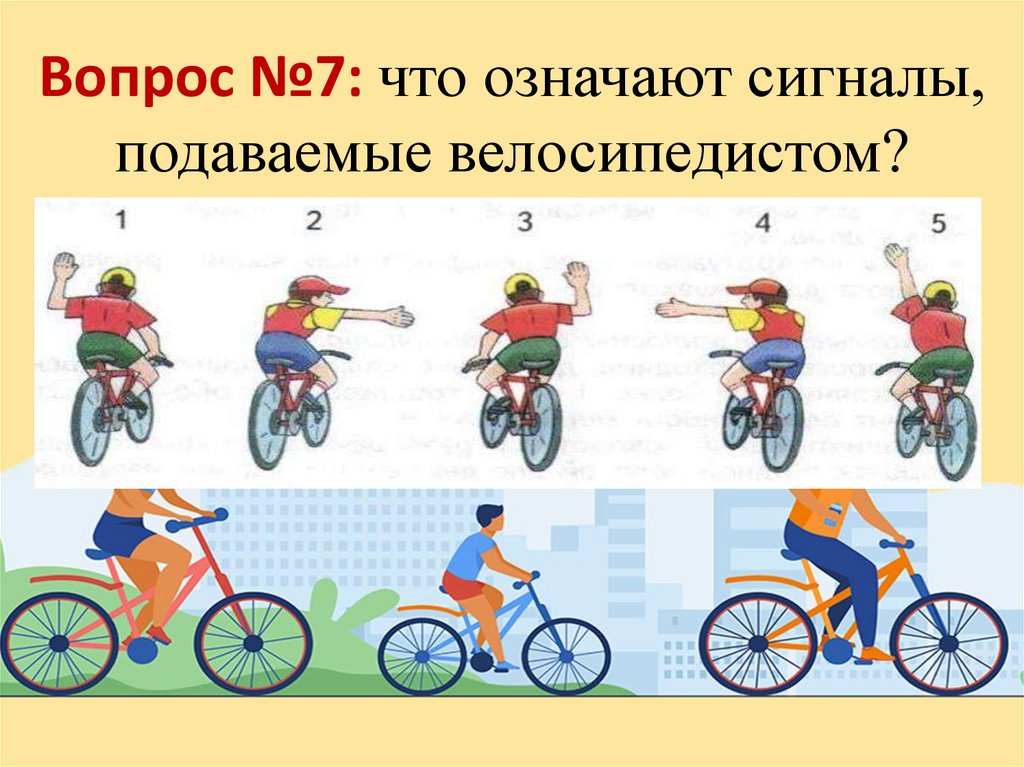 Вопрос №7: что означают сигналы,подаваемые велосипедистом?
