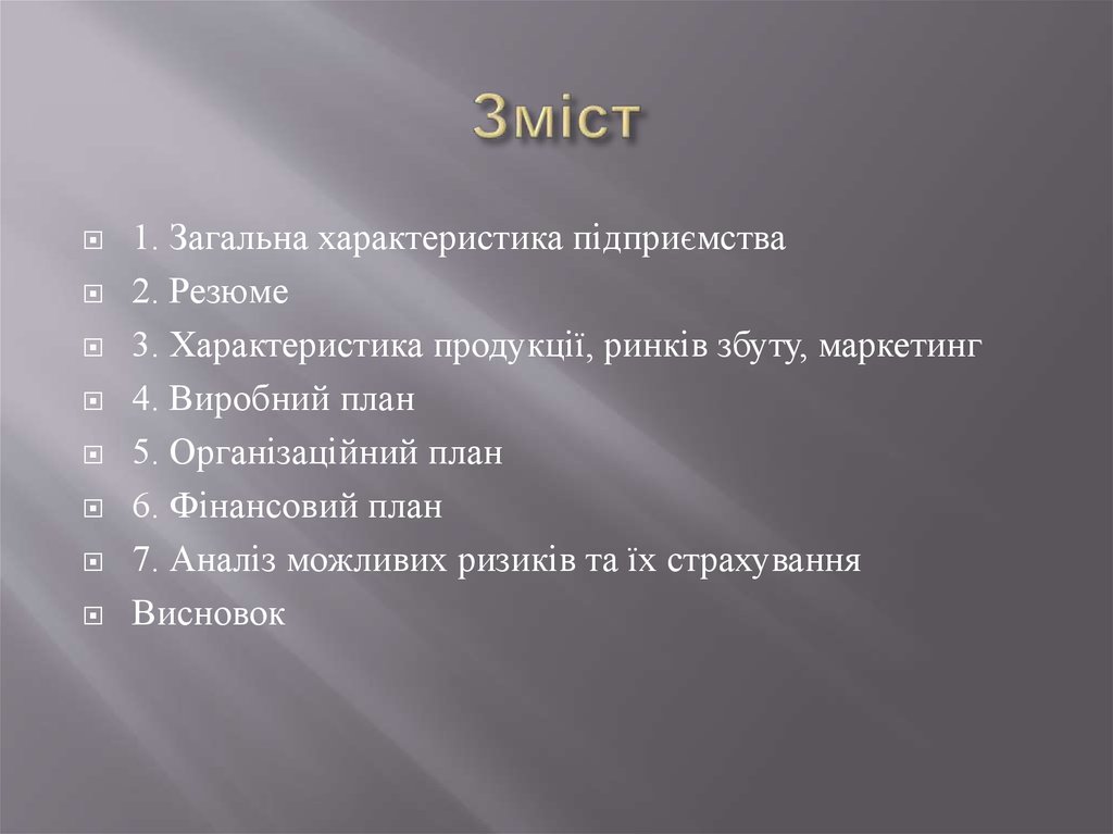 1. Загальна характеристика підприємства2. Резюме