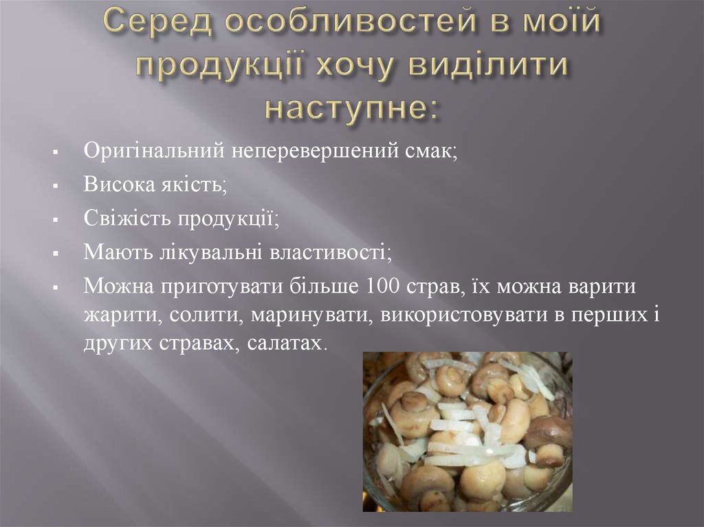 4. Серед особливостей в моїй продукції хочу виділити наступне: