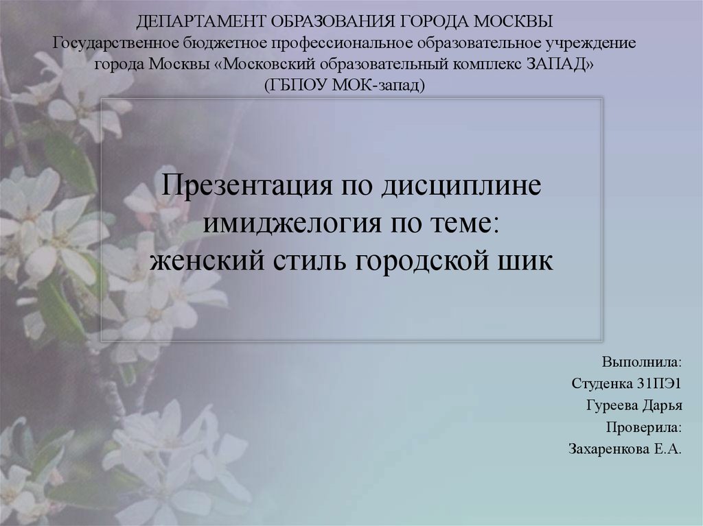 1. Презентация по дисциплине имиджелогия по теме: женский стиль городской шик