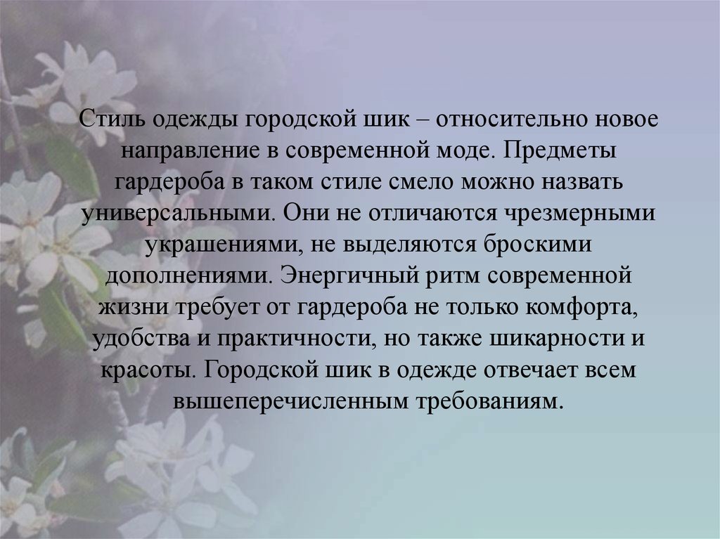 Стиль одежды городской шик – относительно новоенаправление в современной моде. Предметы