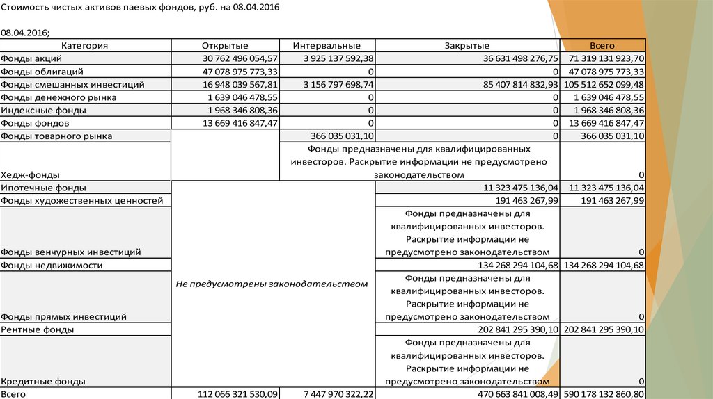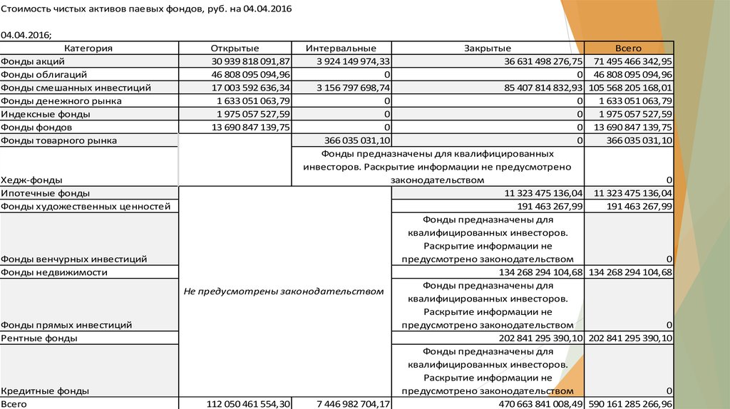 Стоимость чистых активов паевых фондов, руб. на 04.04.201604.04.2016;