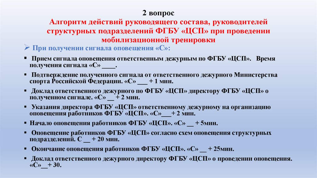 оповещения работников ФГБУ «ЦСП». «С»___+ 2 мин.