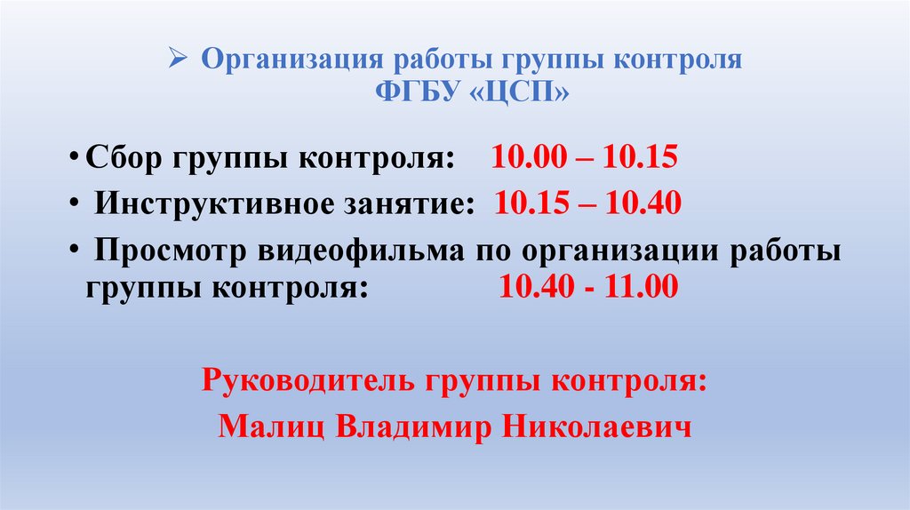 Организация работы группы контроляФГБУ «ЦСП»