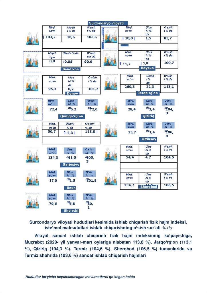 Surxondaryo viloyatining sanoat ishlab chiqarishi