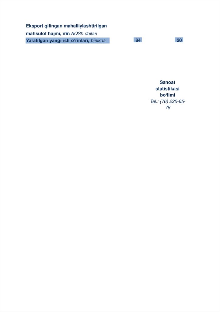 tashkil etilgan ish o‘rinlari soni 76,2 % ga kamaygan.