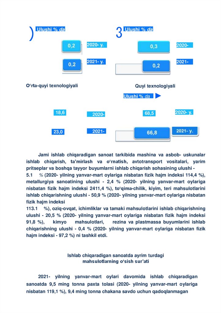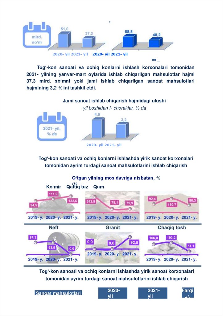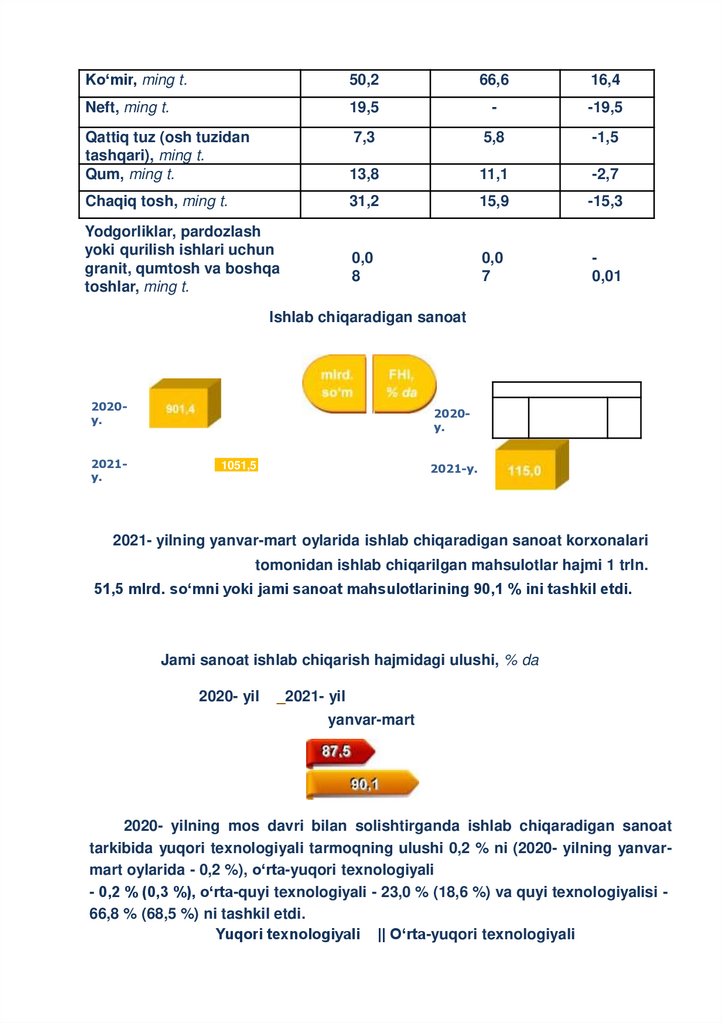 ishlab chiqarilgan bo‘lib, 2020- yilning yanvar-mart oylariga nisbatan sanoat