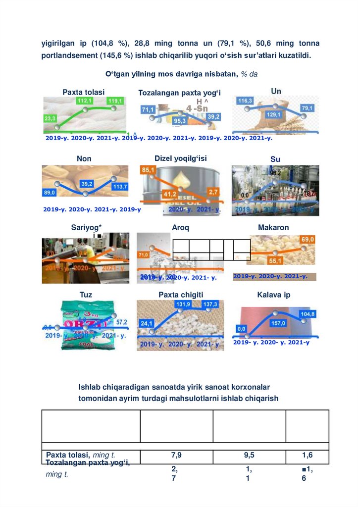 tomonidan ayrim turdagi sanoat mahsulotlarini ishlab chiqarish