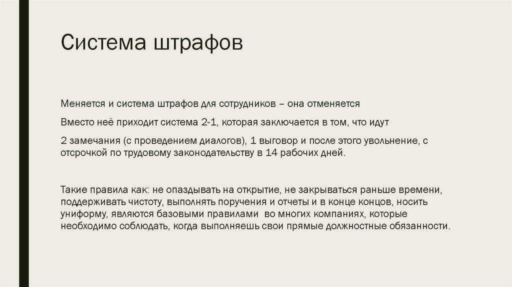 Система штрафовМеняется и система штрафов для сотрудников – она отменяется