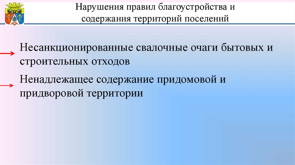 Нарушения правил благоустройства исодержания территорий поселений
