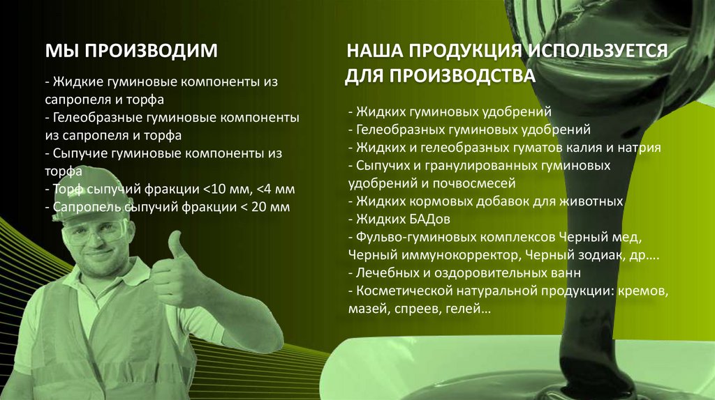 МЫ ПРОИЗВОДИМ- Жидкие гуминовые компоненты из