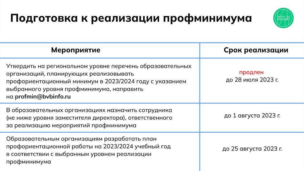 Реализация профориентационного минимума в 2023/2024 учебном году в общеобразовательных организациях Белгородской области