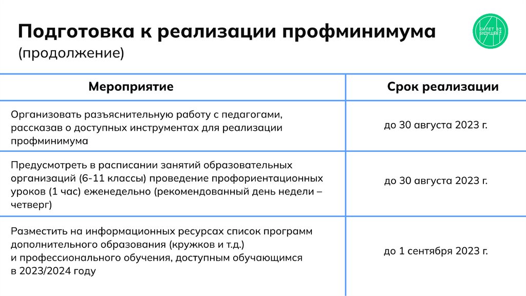 Реализация профориентационногоминимума в 2023/2024 учебном году