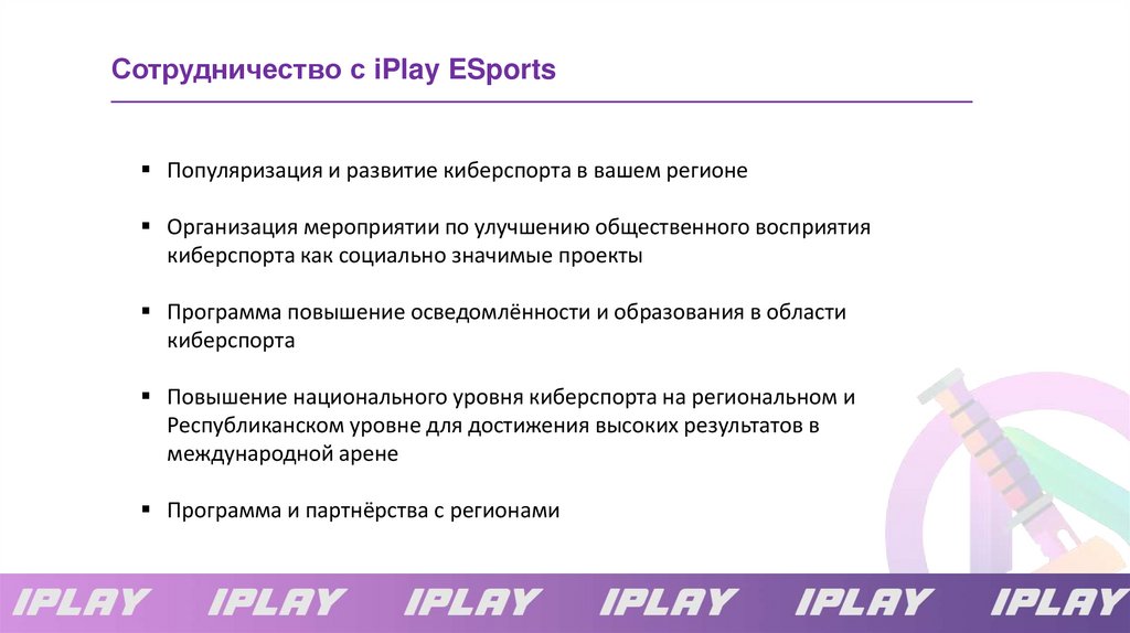 Сотрудничество с iPlay ESportsПопуляризация и развитие киберспорта в вашем регионе