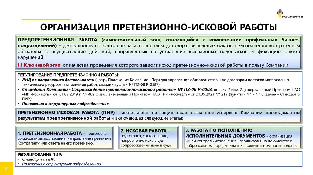 ПРЕТЕНЗИОННО-ИСКОВАЯ РАБОТА (ПИР) – деятельность по защите прав и законных интересов Компании, проводимая по