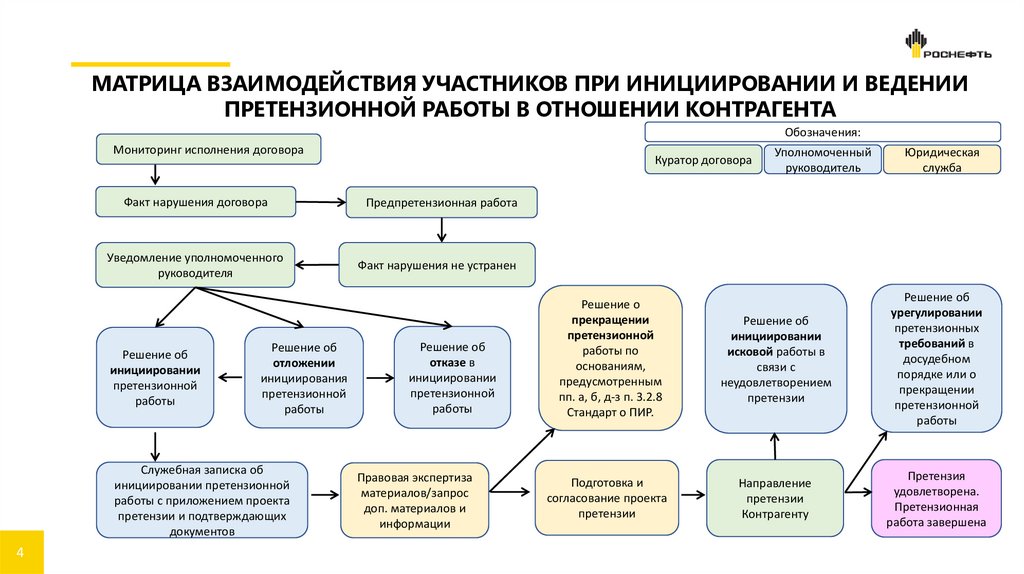 МАТРИЦА ВЗАИМОДЕЙСТВИЯ УЧАСТНИКОВ ПРИ ИНИЦИИРОВАНИИ И ВЕДЕНИИПРЕТЕНЗИОННОЙ РАБОТЫ В ОТНОШЕНИИ КОНТРАГЕНТА