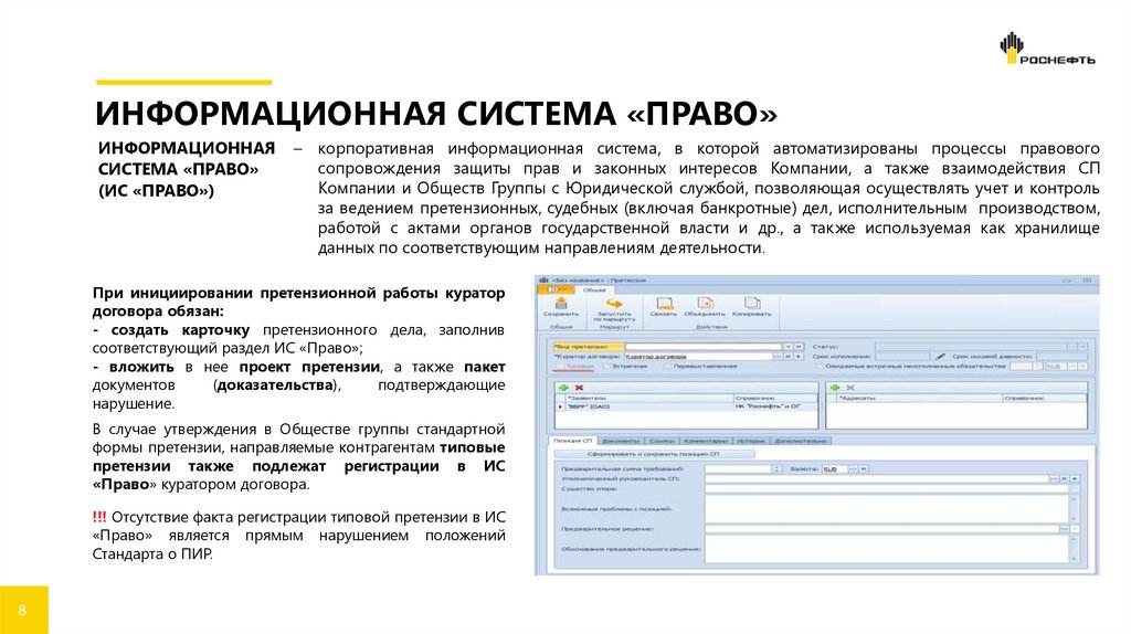 !!! В соответствии со Стандартом Компании о ПИР информация по всем претензионным и судебным делам