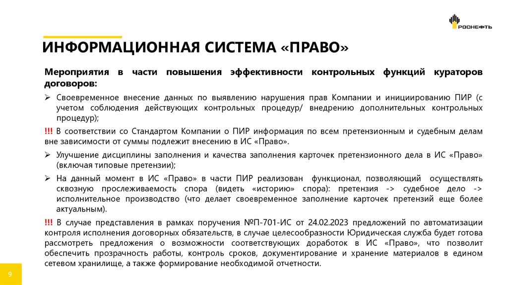 ИНФОРМАЦИОННАЯ СИСТЕМА «ПРАВО»Мероприятия в части повышения эффективности контрольных функций кураторов