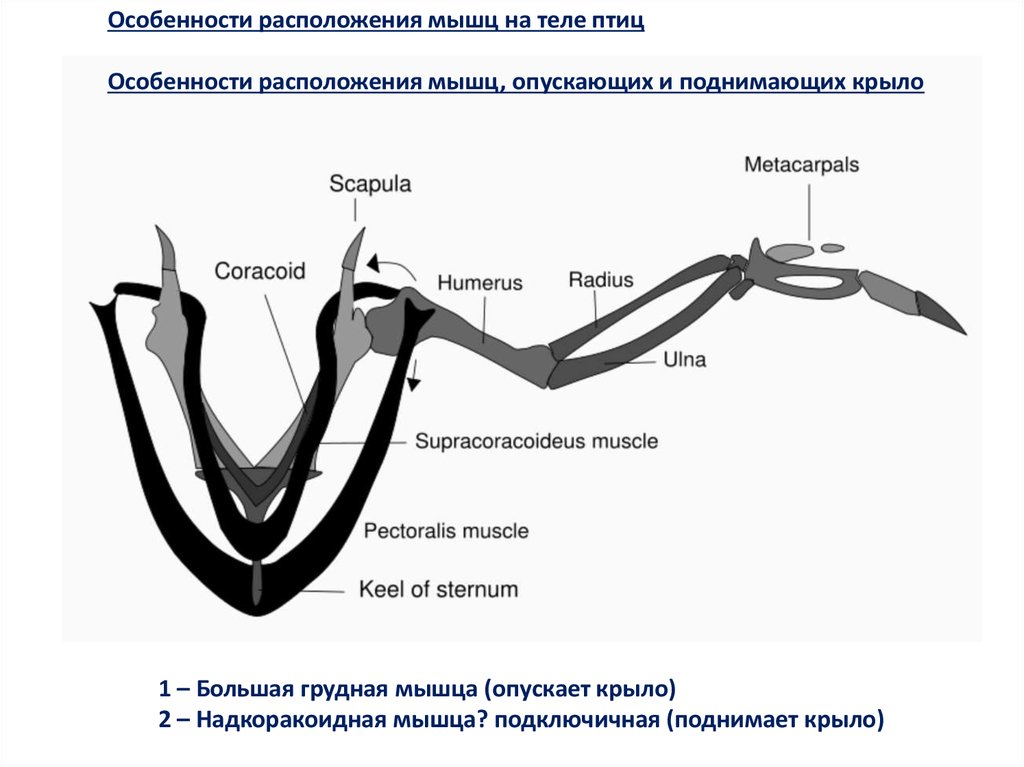 Особенности расположения мышц на теле птицОсобенности расположения мышц, опускающих и поднимающих крыло