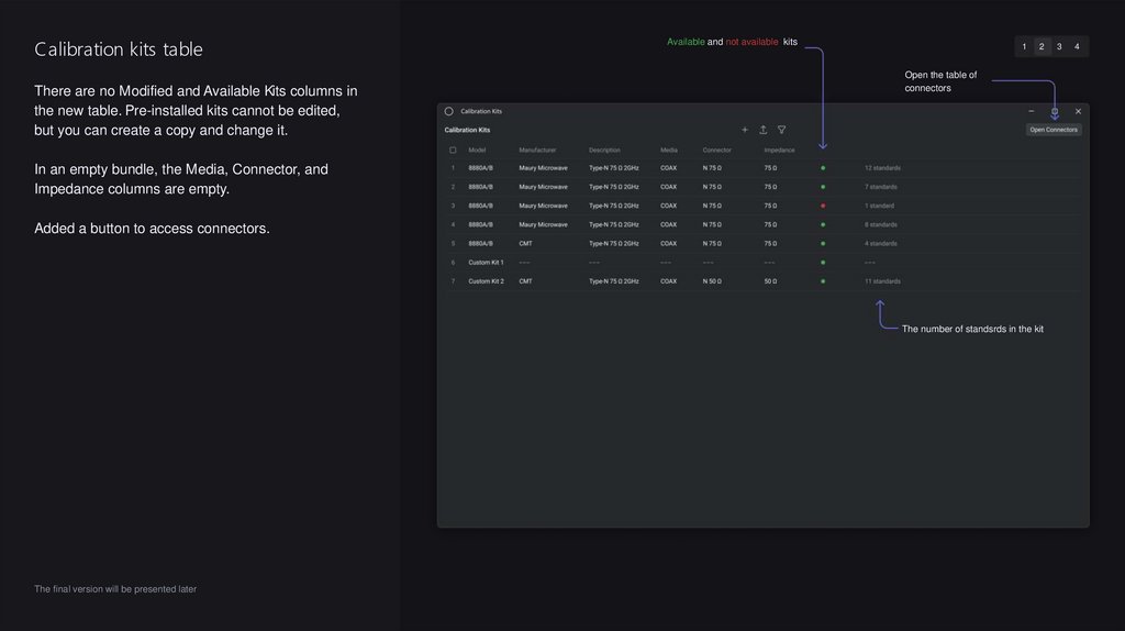 Calibration kits tableThere are no Modified and Available Kits columns in