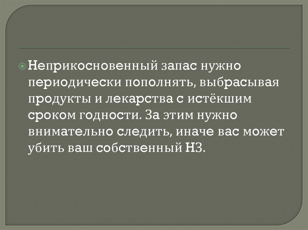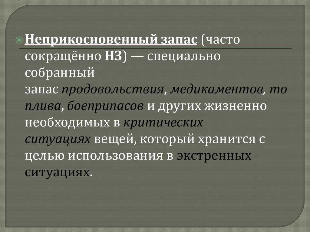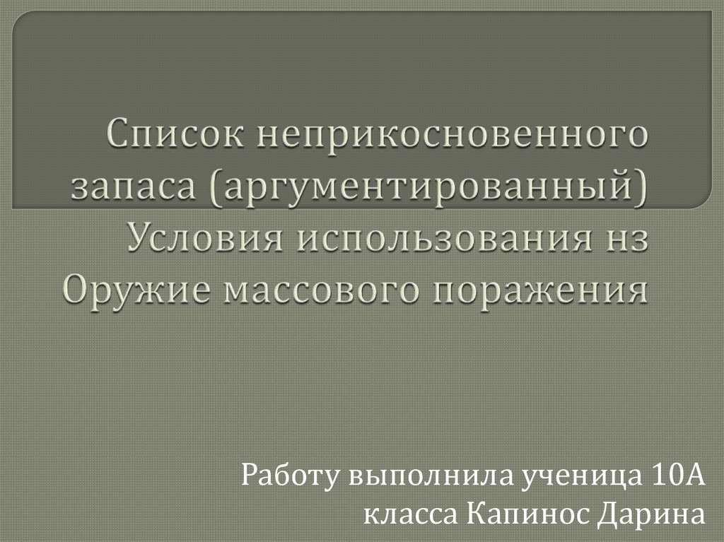 Список неприкосновенного запаса (аргументированный). Условия использования НЗ. Оружие массового поражения