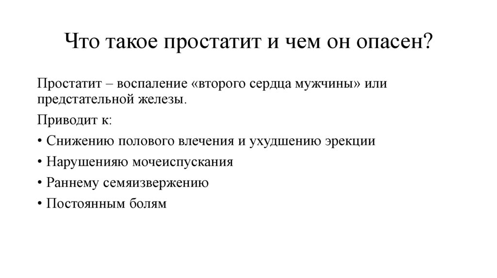 Что такое простатит и чем он опасен?Простатит – воспаление «второго сердца мужчины» или
