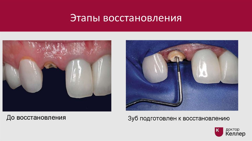 Этапы восстановленияЗуб восстановлен со