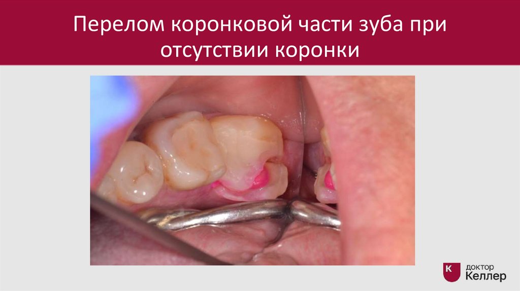 Перелом коронковой части зуба приотсутствии коронки