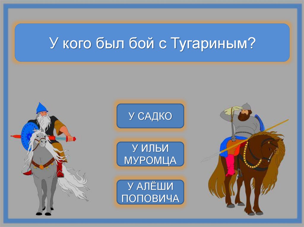 У кого был бой с Тугариным?У САДКО