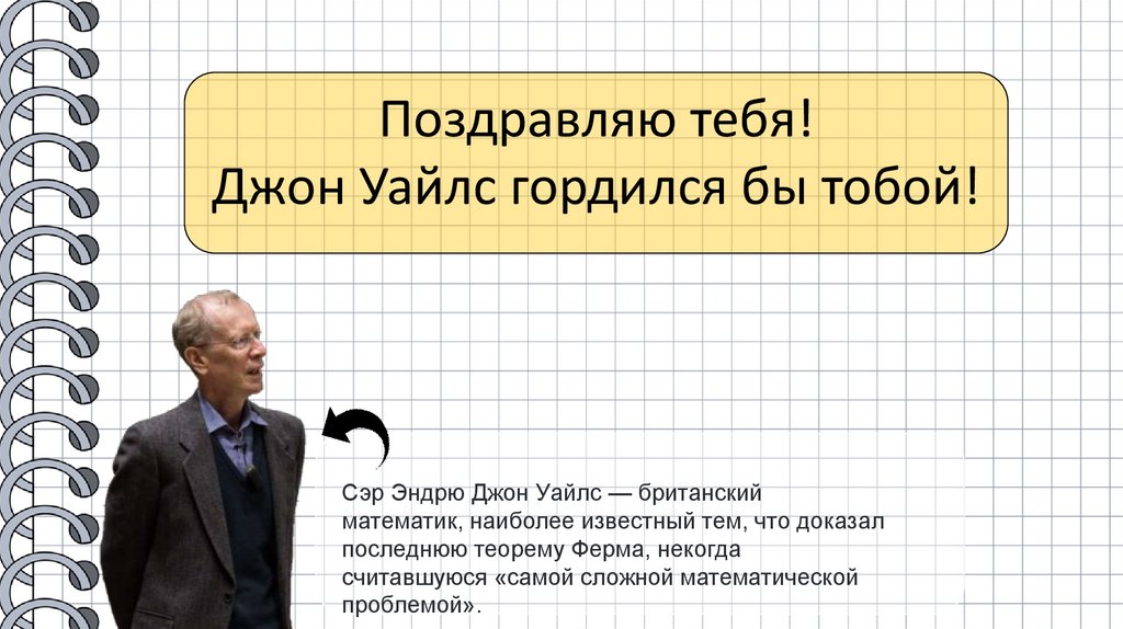 Поздравляю тебя!Джон Уайлс гордился бы тобой!