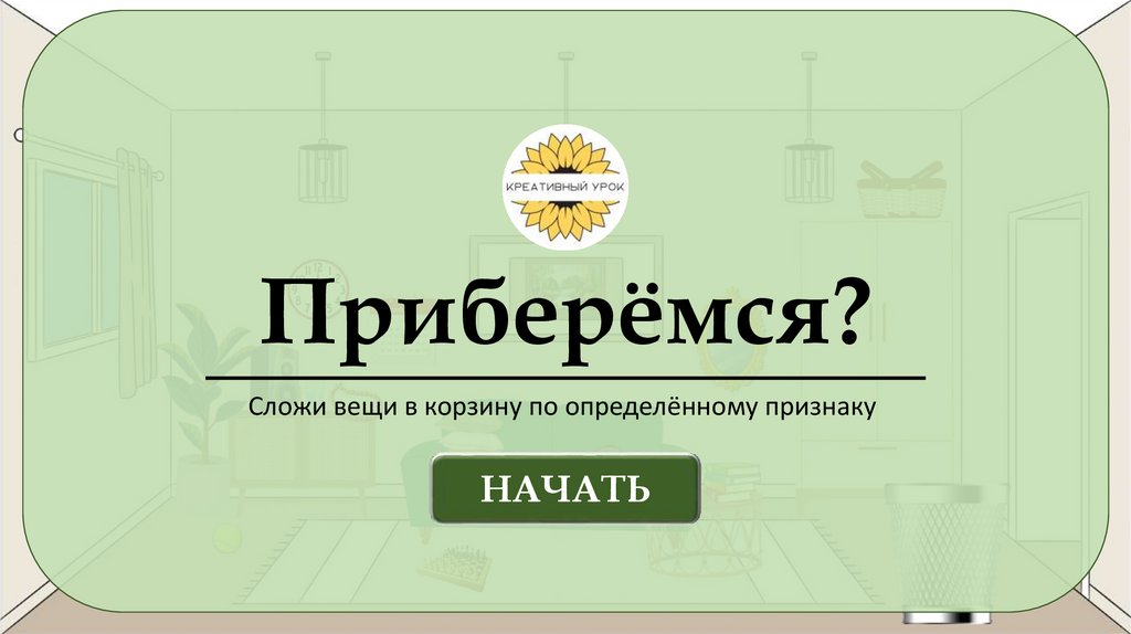 Приберёмся?Сложи вещи в корзину по определённому признаку
