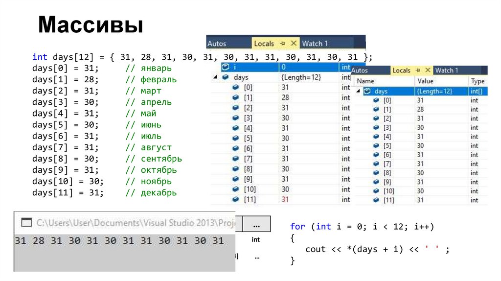 days[12] = { 31, 28, 31, 30, 31, 30, 31, 31, 30, 31, 30, 31 };