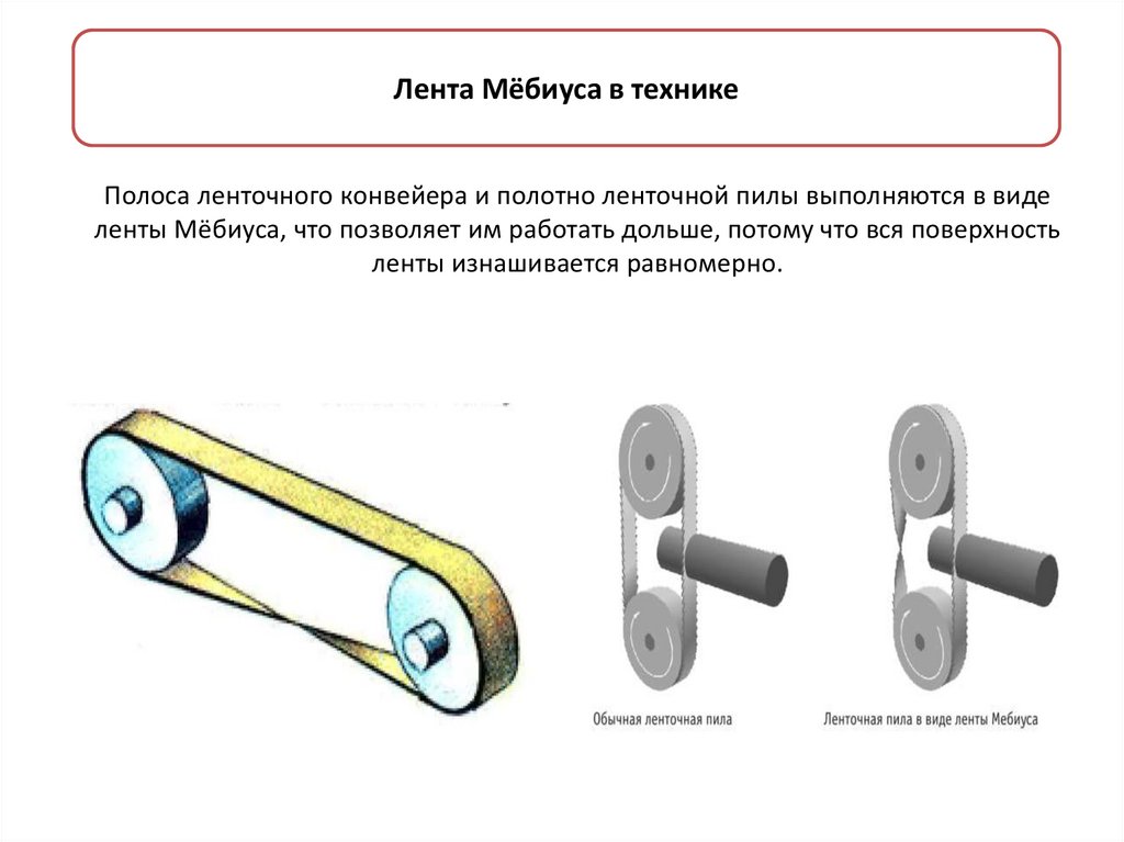 Лента Мёбиуса в техникеПолоса ленточного конвейера и полотно ленточной пилы выполняются в виде