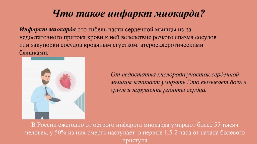 Что такое инфаркт миокарда?Инфаркт миокарда-это гибель части сердечной мышцы из-за