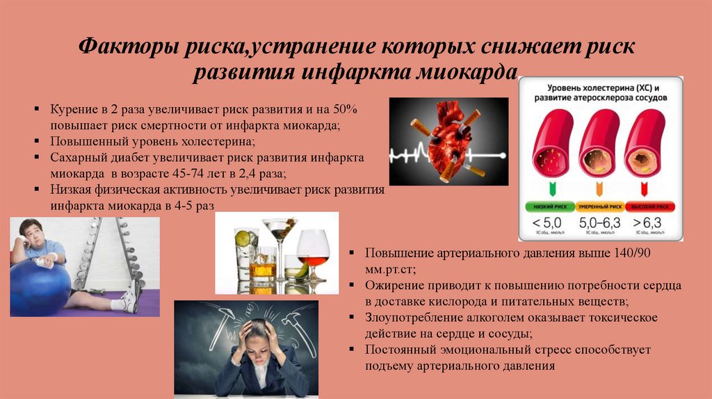Факторы риска,устранение которых снижает рискразвития инфаркта миокарда