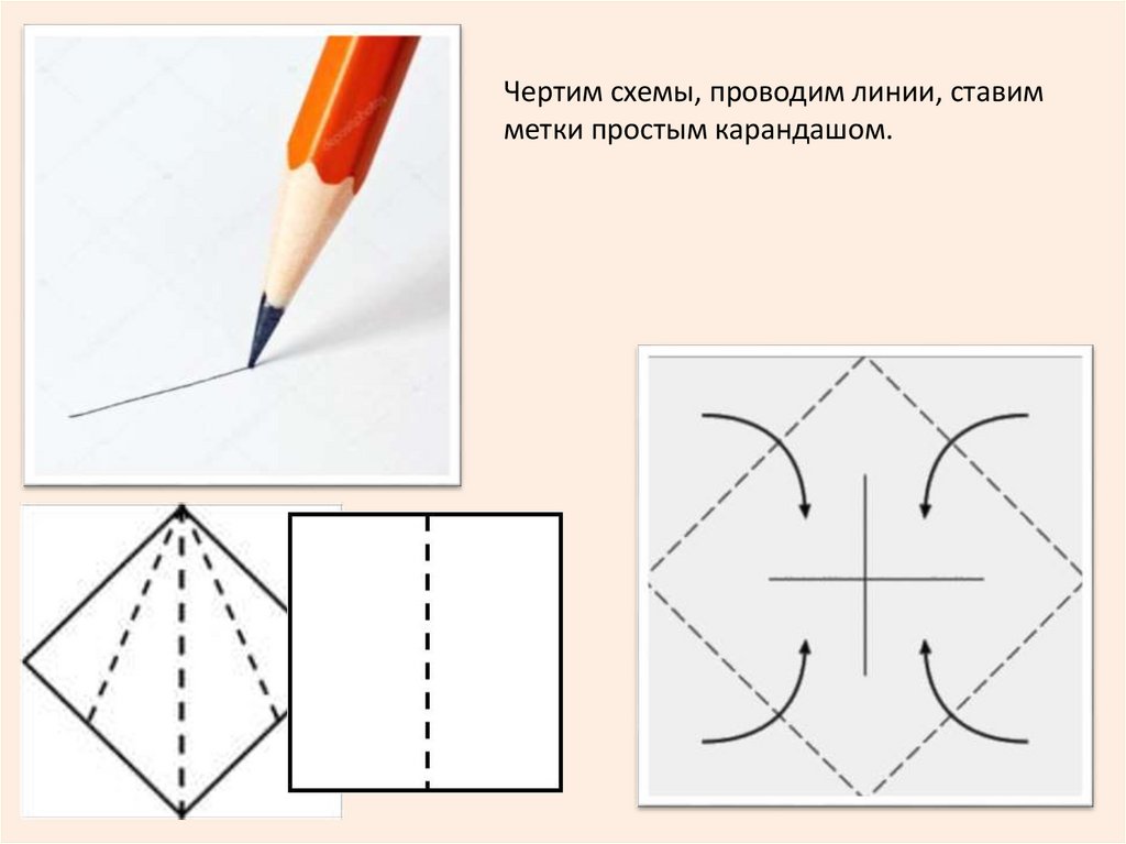 Чертим схемы, проводим линии, ставимметки простым карандашом.