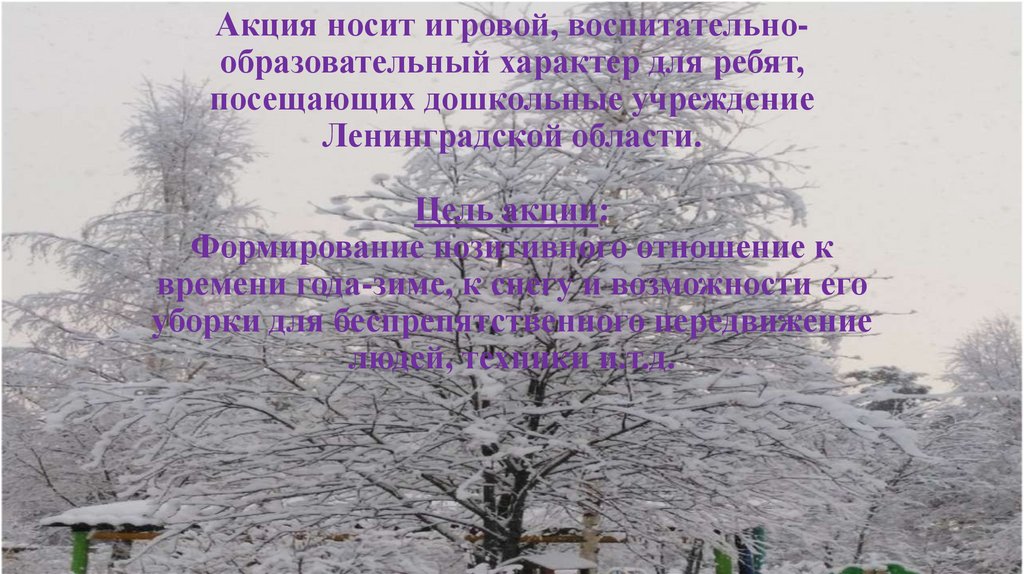 Акция носит игровой, воспитательнообразовательный характер для ребят,посещающих дошкольные учреждение