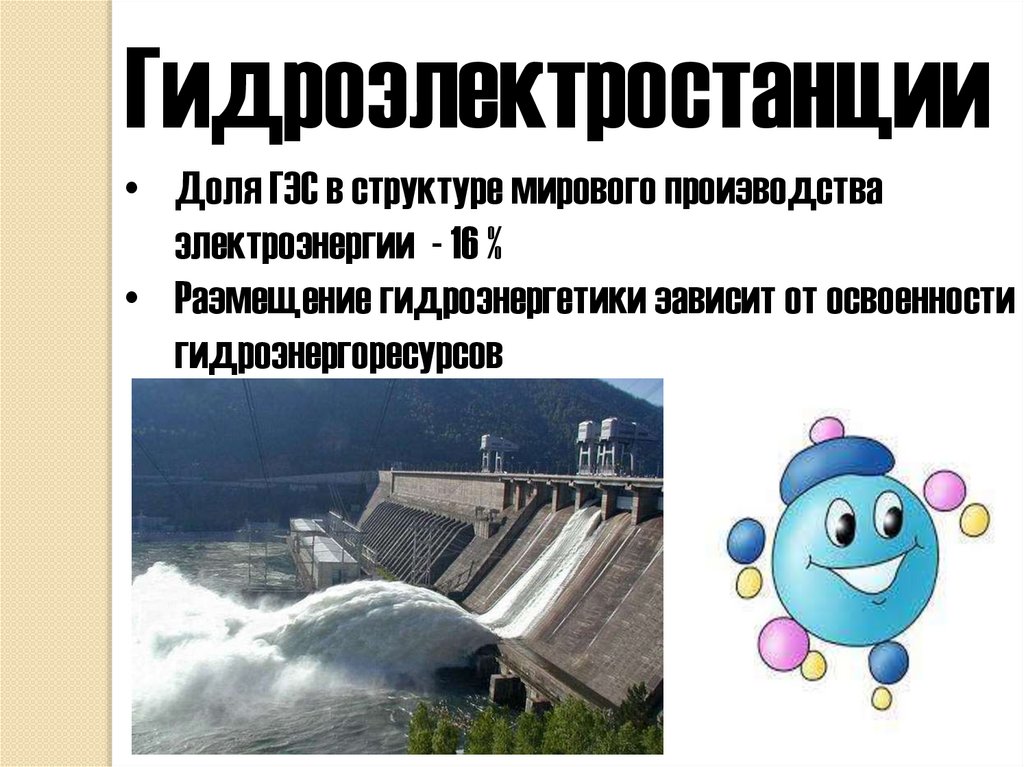 Гидроэлектростанции• Доля ГЭС в структуре мирового производства