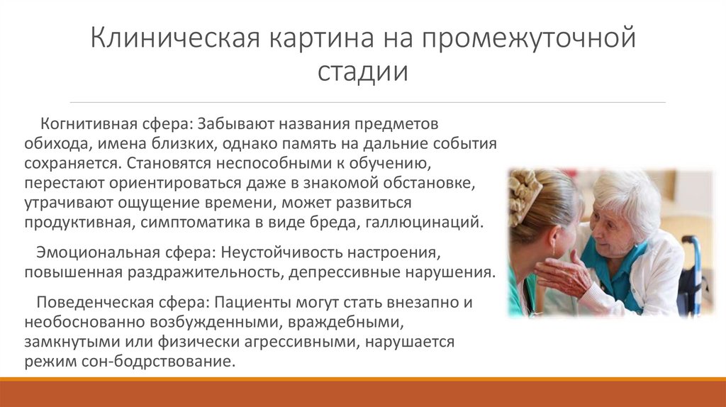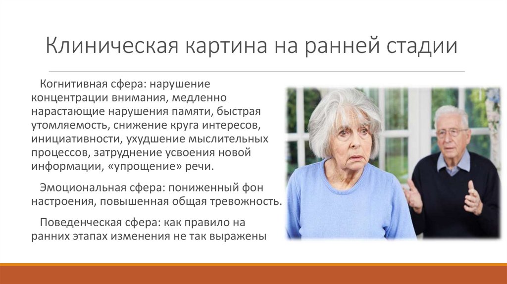 Клиническая картина на ранней стадииКогнитивная сфера: нарушение