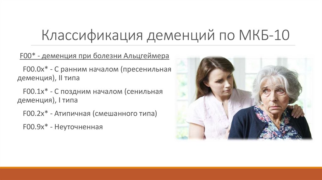 Классификация деменций по МКБ-10F00* - деменция при болезни Альцгеймера