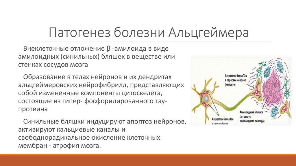 Патогенез болезни АльцгеймераВнеклеточные отложение β -амилоида в виде