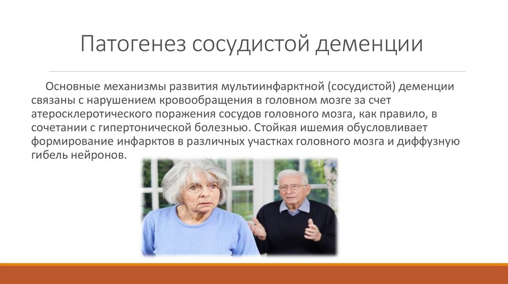 Патогенез сосудистой деменцииОсновные механизмы развития мультиинфарктной (сосудистой) деменции
