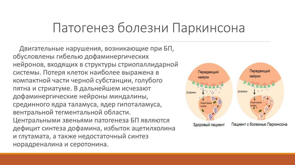 Патогенез болезни ПаркинсонаДвигательные нарушения, возникающие при БП,