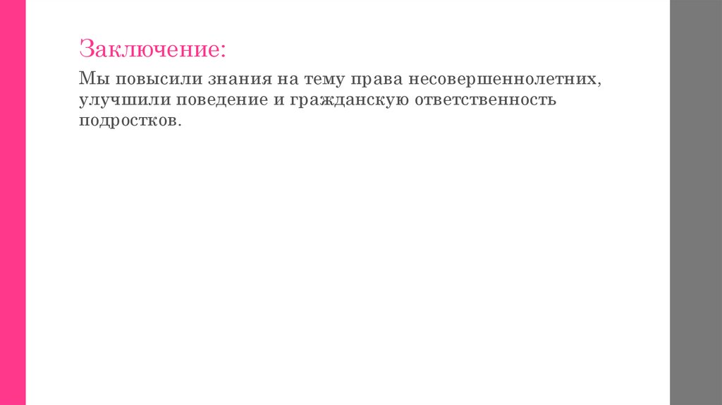 Заключение:Мы повысили знания на тему права несовершеннолетних,
